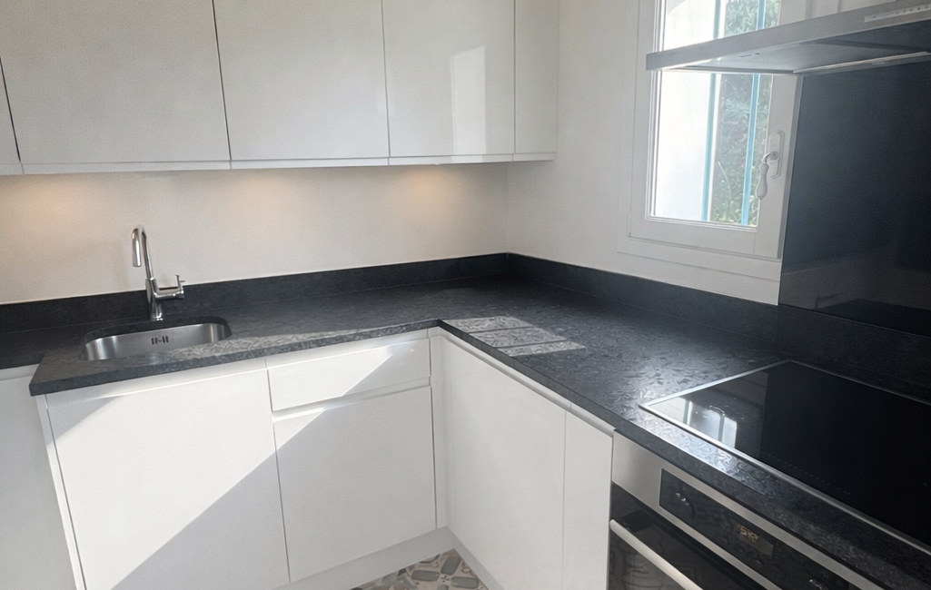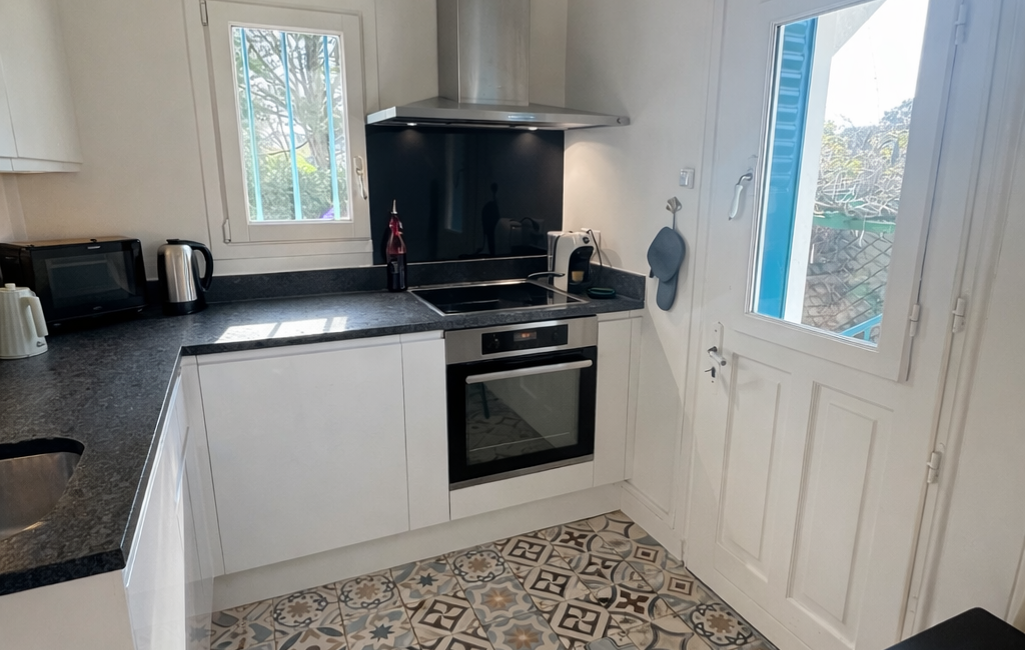 Cuisine séparée aménagée et équipée, électroménager Miele.