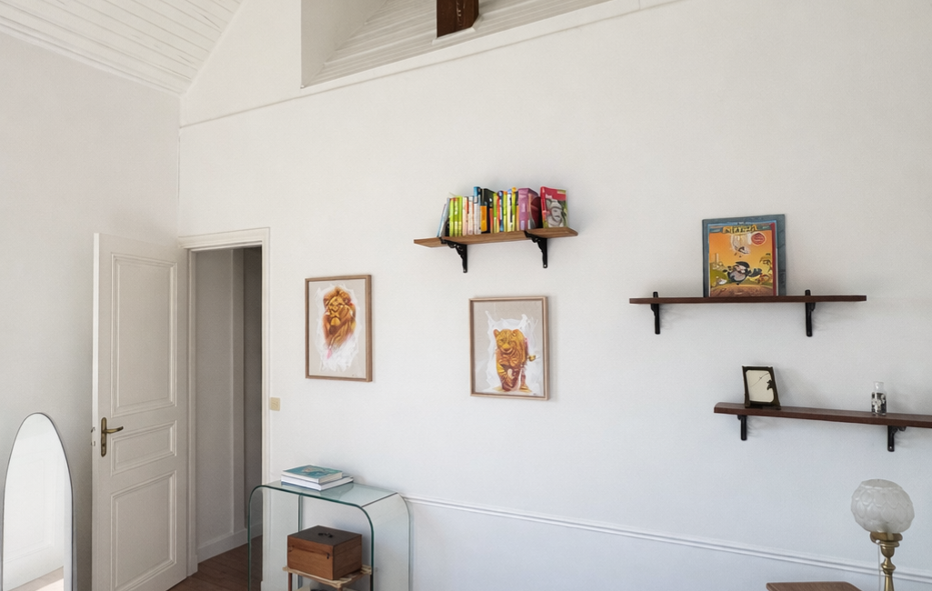 A l'étage, une grande pièce palière qui dessert 3 chambres dont une avec toit cathédrale et une grande terrasse privative de 9m².