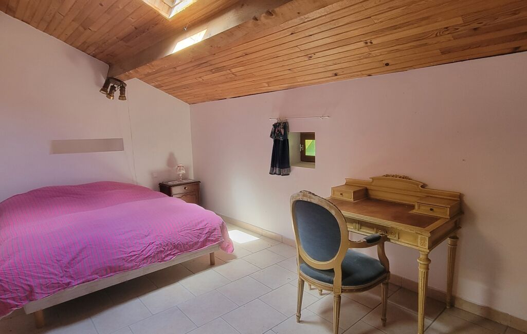 Une partie indépendante vient compléter l'ensemble avec quatre chambres supplémentaires et une pièce à aménager selon vos projets : hébergement touristique, maison d'amis, espace de travail...