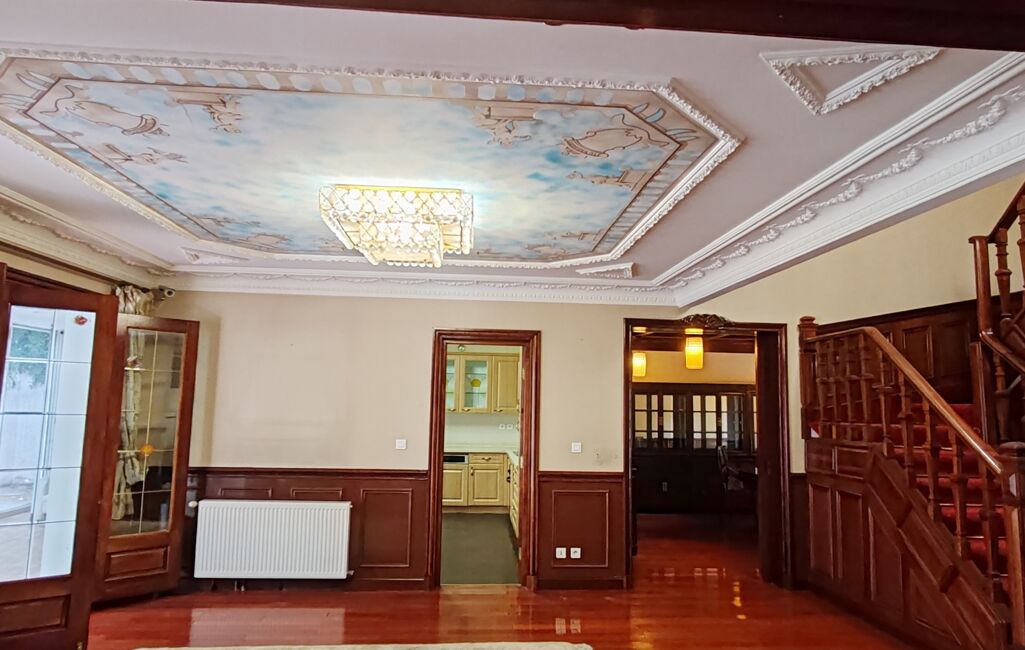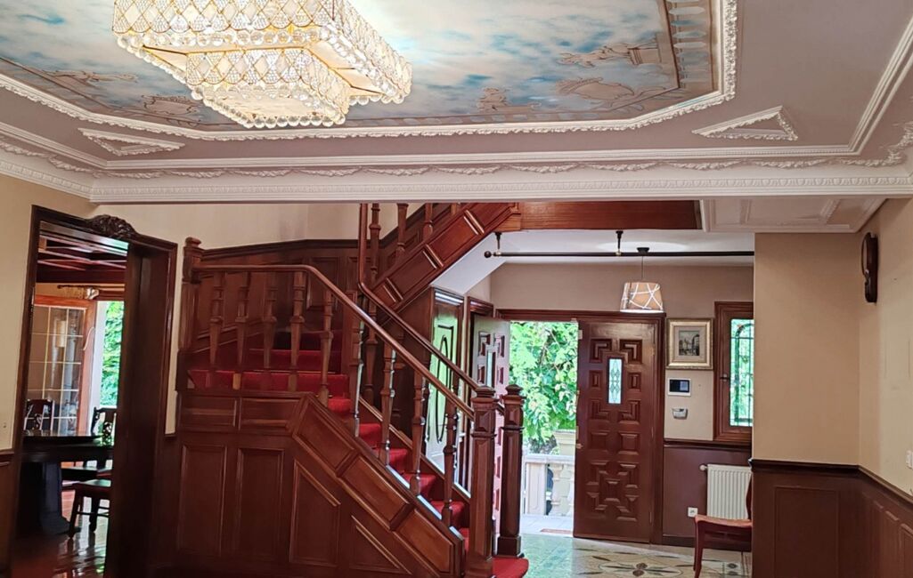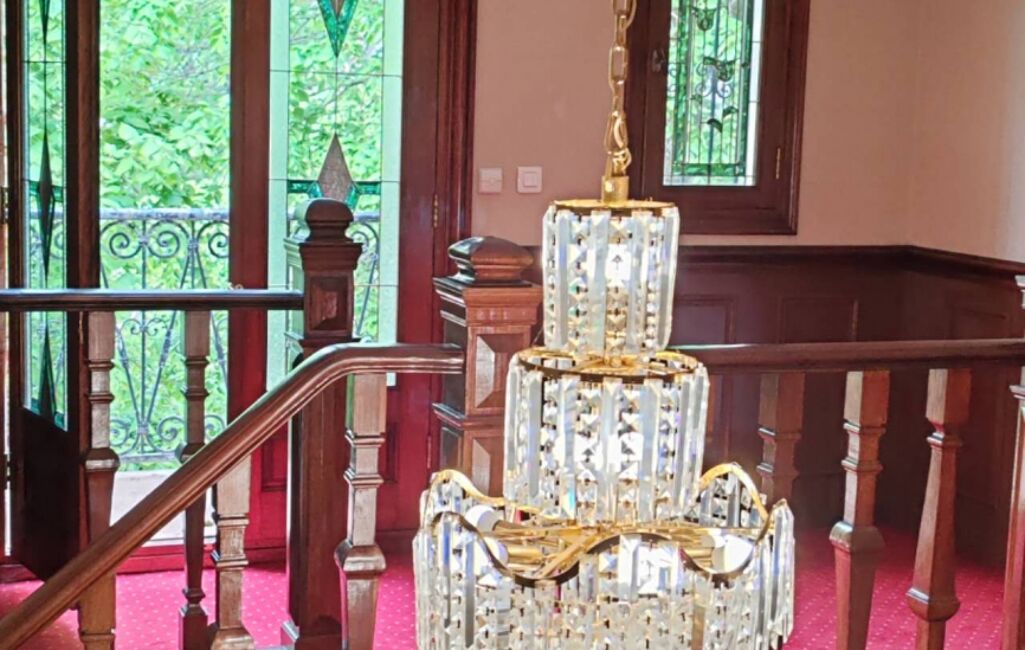 peinture moderne , les lustres de luxe, les vitraux de l'art moderne, la spacieuse salle à manger ainsi que le salon équipé d'une cheminée fonctionnelle, la cuisine équipée . Un bureau, et une salle d'eau viennent parfaire ce niveau. L'étage supérieur abrite les 5 chambres, dont une magnifique suite parentale avec sa salle de bain privée et son dressing, offrant un espace intime et confortable.