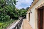 Les grandes ouvertures offrent une vue imprenable sur un jardin intimiste et arboré, parfait pour les moments de détente en plein air. Un balcon et une terrasse viennent compléter cet espace extérieur pour profiter des douces soirées d'été.