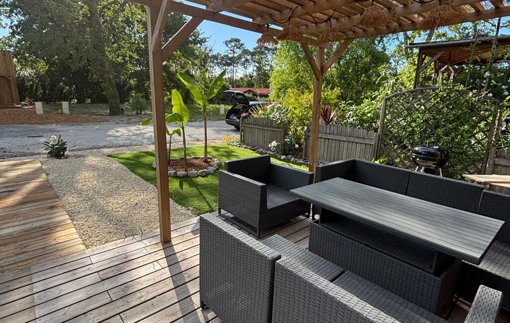 iad France - Virginie Bardy vous propose: Situé au cOEur d’un Parc Résidentiel de Loisirs arboré à Arès, charmant chalet HLL récent offrant un cadre de vie paisible et verdoyant. Il se compose d’un séjour lumineux avec cuisine ouverte équipée, de deux chambres et d’une salle d’eau. À l’extérieur, vous profiterez d’une belle terrasse bois avec pergola, d’un jardin aménagé et d’un stationnement privatif. Climatisation réversible, prestations soignées, environnement calme. Idéal résidence secondaire ou investissement loisirs. Bien soumis au statut HLL en PRL (usage résidence secondaire uniquement).