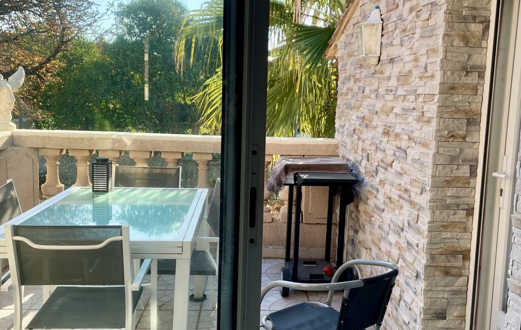 Possibilité de prendre vos repas sur la terrasse avec vue sur votre jardin pisciné.