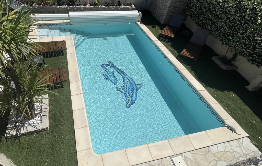 Le jardin paysagé est clos et parfaitement aménagé : la piscine et son local (pompe neuve, volet de protection), ses plages, une terrasse couverte et sa cuisine d'été, un toilette supplémentaire. Ce cadre verdoyant et apaisant est idéal pour les moments de détente en famille.