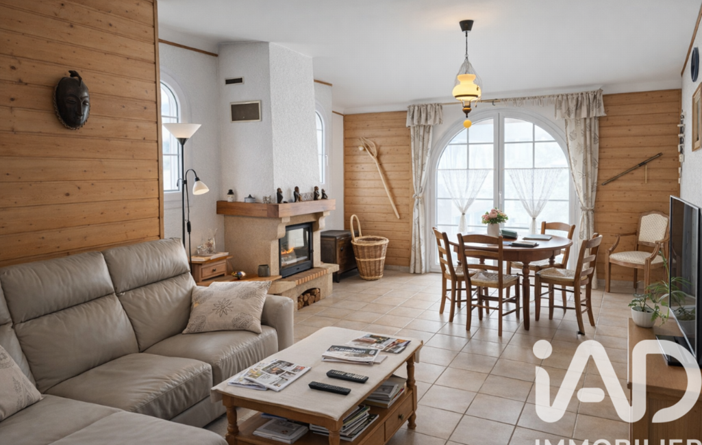 Côté extérieur, la maison dispose d'un grand garage attenant et d'un espace de stationnement pratique pour vos véhicules. Une grande terrasse et un balcon exposé sud est vous permettent de profiter de la vue dégagée sur la montagne environnante.