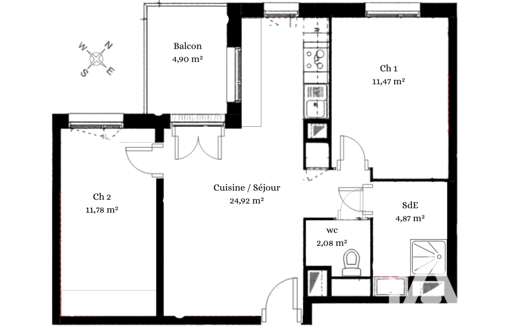 • Surface du balcon : 4.89 m²