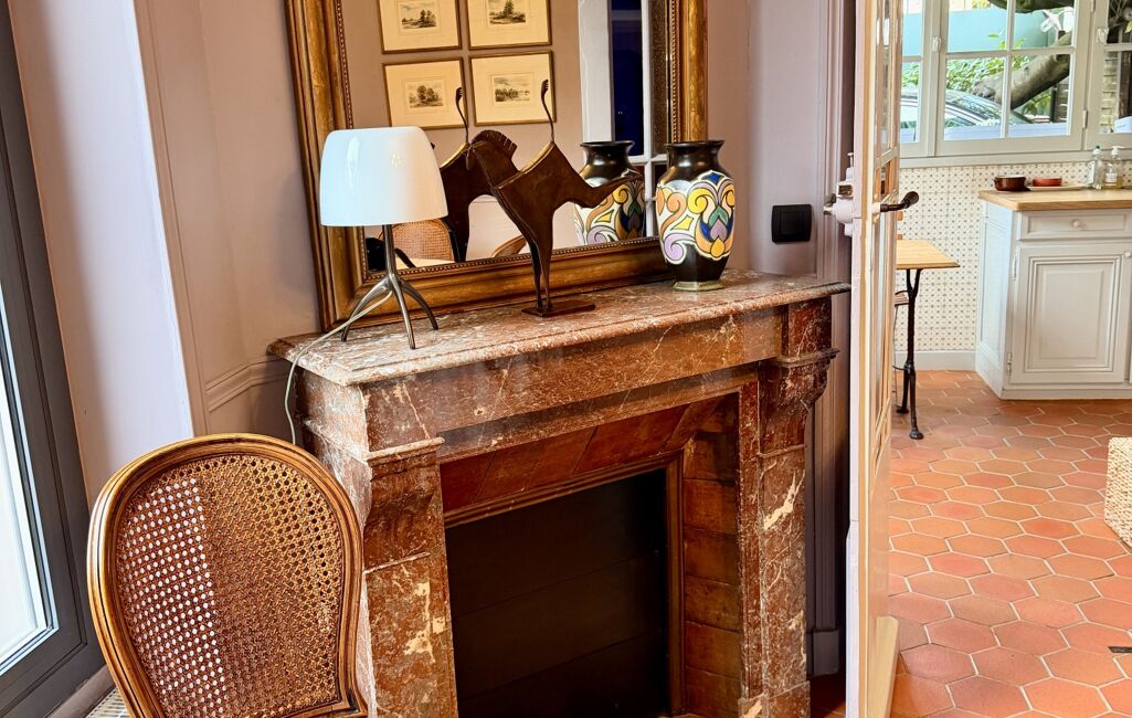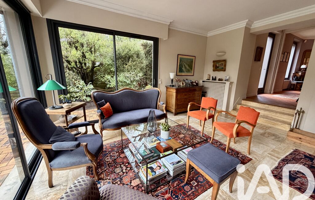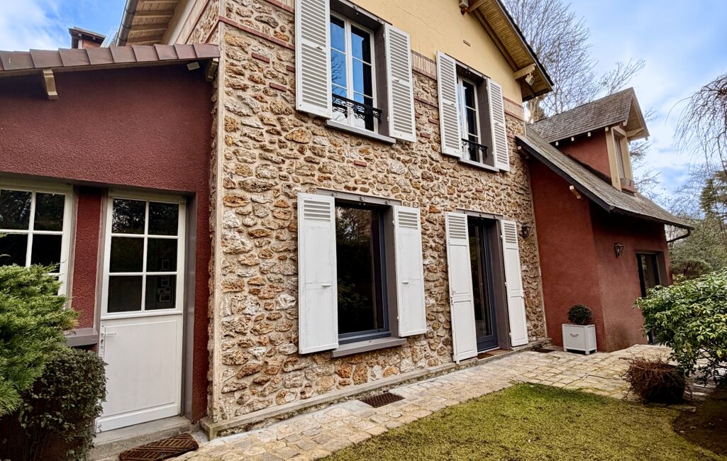 iad France - Claire Ruiz vous propose: Derrière sa façade en meulière pleine de caractère, cette ravissante maison de charme des années 30, subtilement agrandie par des extensions harmonieuses, offre une atmosphère chaleureuse et raffinée.