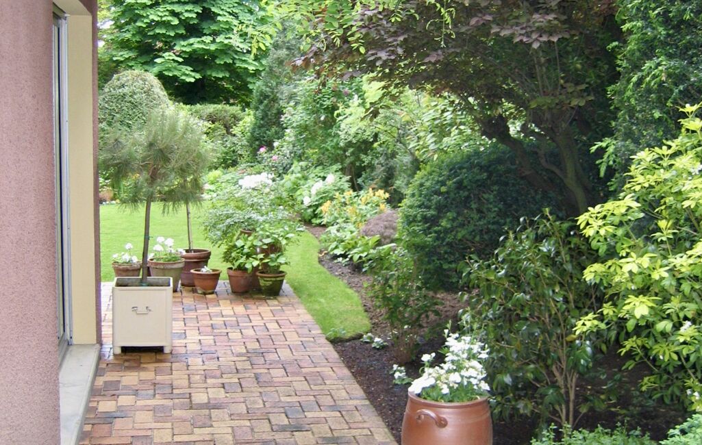 À l’extérieur, le terrain arboré de 562 m², idéalement exposé et parfaitement entretenu, invite au farniente à l’abri des regards.