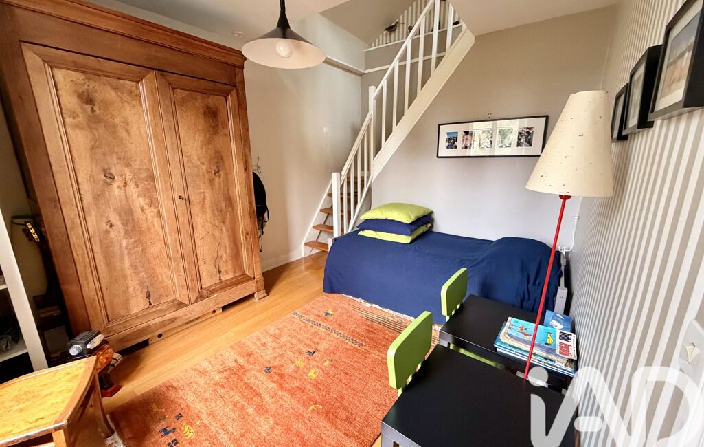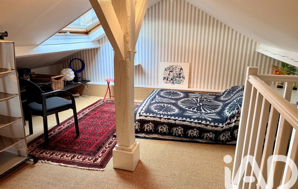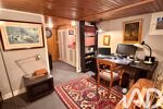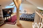 À l’étage, l’espace nuit séduit par sa configuration atypique, avec une suite parentale composée d’une chambre disposant d’une salle de bains et d’une salle d’eau, et d’un espace original composé d’un bureau et d’une chambre en mezzanine avec lavabo et wc. Entre ces deux espaces, un bureau/ bibliothèque invite à la lecture ou à la détente. Il est possible de modifier cette configuration afin de créer une troisième chambre (projet visible).