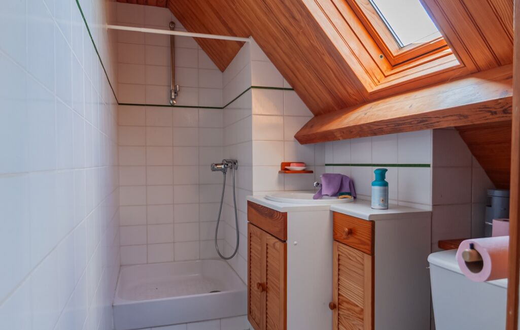 À l’étage : un palier dessert deux chambres, ainsi qu’une salle d’eau avec WC.