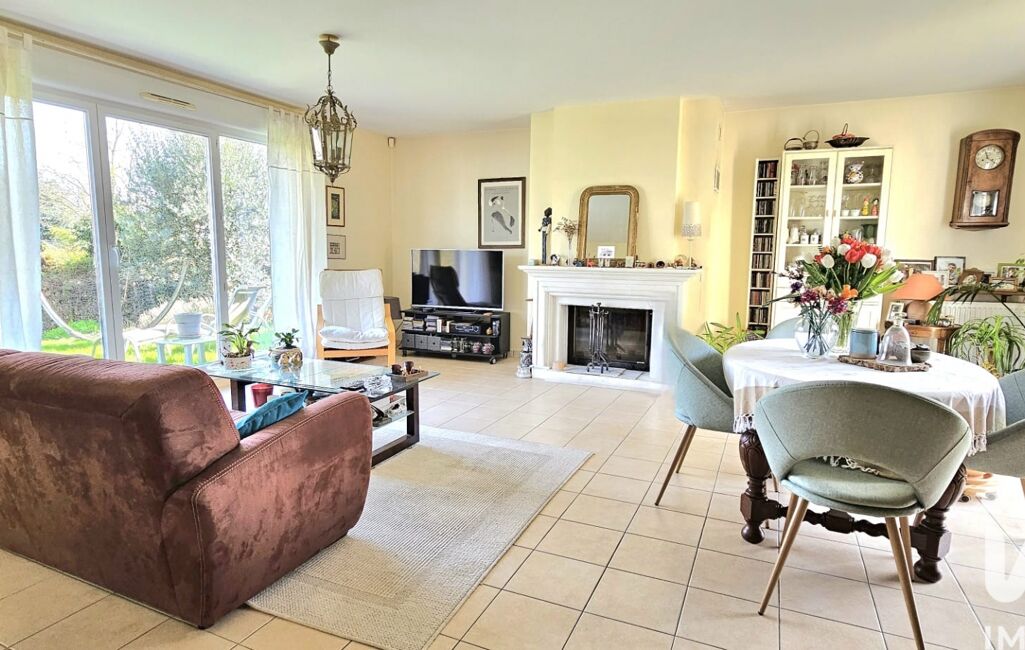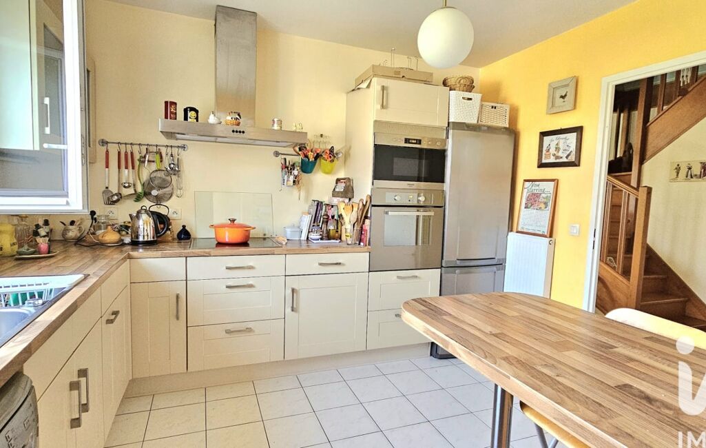 iad France - Sophie SCONTRINO vous propose: Rare sur le secteur ! A proximité de la forêt, dans un quartier pavillonnaire calme et prisé, belle maison à l'intérieur soigné, construction de 2007 proposant en rdc : Grande entrée avec placards, cuisine équipée et aménagée de qualité avec possibilité d'ouverture sur le séjour double avec cheminée insert, proposant deux accès au jardin et à la terrasse, wc.