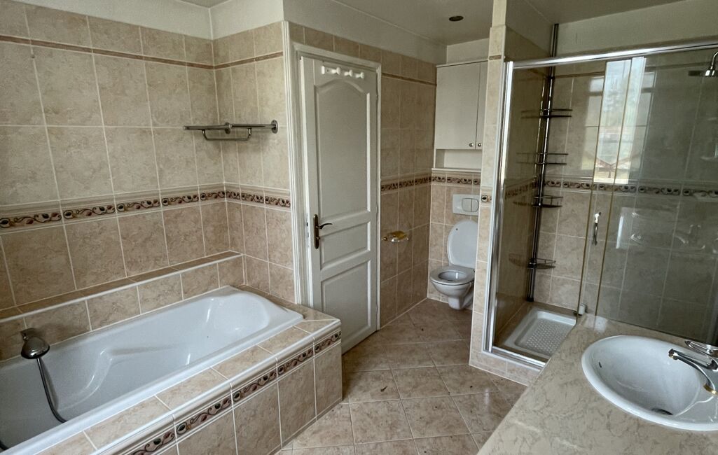 À l’étage, vous trouverez trois chambres ainsi qu’une salle de bain. Cet espace nuit nécessite une rénovation complète, offrant l’opportunité de créer un intérieur moderne et fonctionnel à votre image.