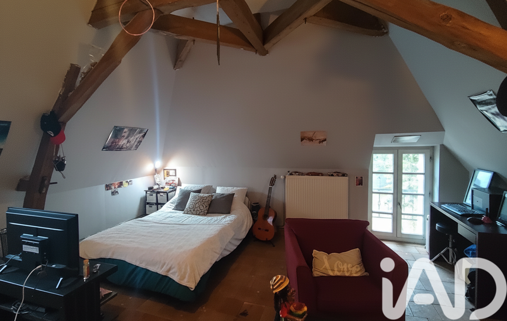 Au deuxième étage, une vaste chambre est aménagée sous la toiture.