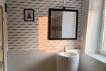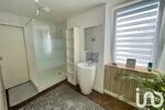 A l'étage vous accédez par un palier à un dressing et deux autres larges chambres. Chacune possède l'accès à leur salle d'eau respective. L'une comprend une douche, vasque et placard tandis que l'autre offre une baignoire, vasque et un WC.