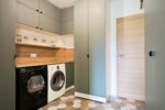 Elle se compose d'une entrée qui vous permet d'accès à une belle pièce de vie de 24 m² ouverte sur la cuisine totalement équipée et récente de 23 m². Le rez-de-chaussée est également composé d'une chambre de 14 m², une salle d'eau de 3 m² ou vous pourrez installer une douche et un simple vasque. Un espace buanderie de 7 m² et Un WC séparé sont également présents.