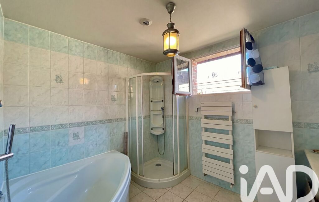 Au rez-de-chaussée, vous découvrirez un bel espace de vie comprenant un séjour lumineux d'environ 40m² avec son insert bois, une cuisine ouverte entièrement équipée. Un dégagement vous mène sur une buanderie pratique avec rangements, ainsi qu'une salle de bain (baignoire + douche) avec double vasque et un wc séparé avec lave-main. Les pièces sont fonctionnelles, offrant un agencement optimal pour le quotidien.
