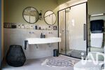 La maison dispose également d’équipements de confort: climatisation gainable, VMC, chauffe-eau thermodynamique, portail motorisé, interphone et alarme, ainsi que volets roulants électriques à lames orientables.