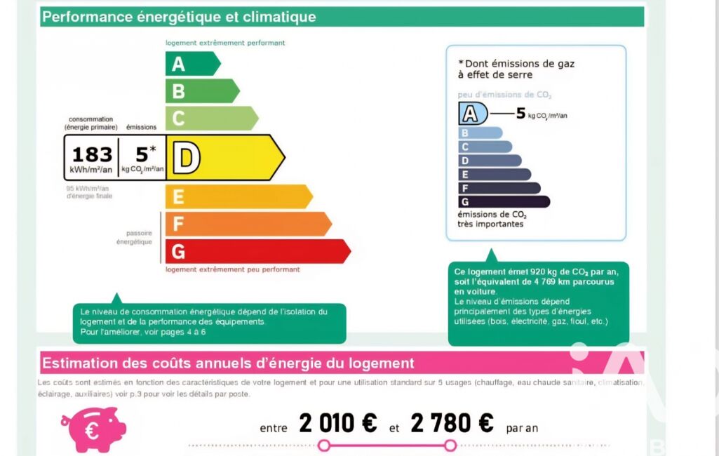 Information d'affichage énergétique sur ce bien : classe ENERGIE D indice 183 et classe CLIMAT B indice 5. Les informations sur les risques auxquels ce bien est exposé, y compris l'obligation légale de débroussaillement, sont disponibles sur le site Géorisques : http://www.georisques.gouv.fr.