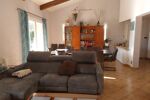Dans un environnement de qualité et résidentiel, maison de plain-pied de 131m2 hab environ, sur 2 200m2 de terrain clos, belle pièce de vie (43m2) donnant sur sa terrasse au sud, trois chambres, deux salle d'eau, avec studio indépendant. Grand garage de 53m2 avec sa grande mezzanine. Piscine 8x4 avec son pool-house. Deux terrasses. Cellier. Cave. Menuiseries DV PVC avec moustiquaires. Climatisation réversible, insert. Panneaux photovoltaïques (revente 2 000 ?/an). Forage. Adoucisseur. Aspiration centralisée......contact : 06x35x15x31x80