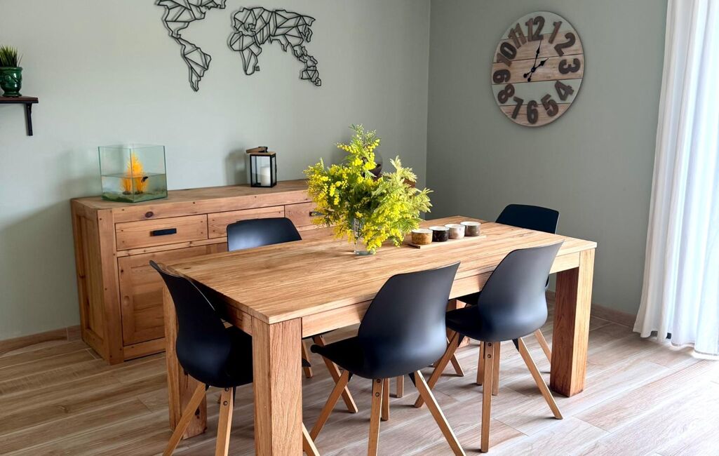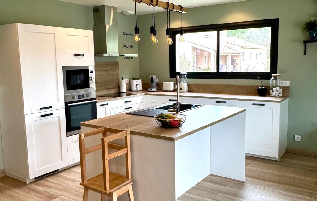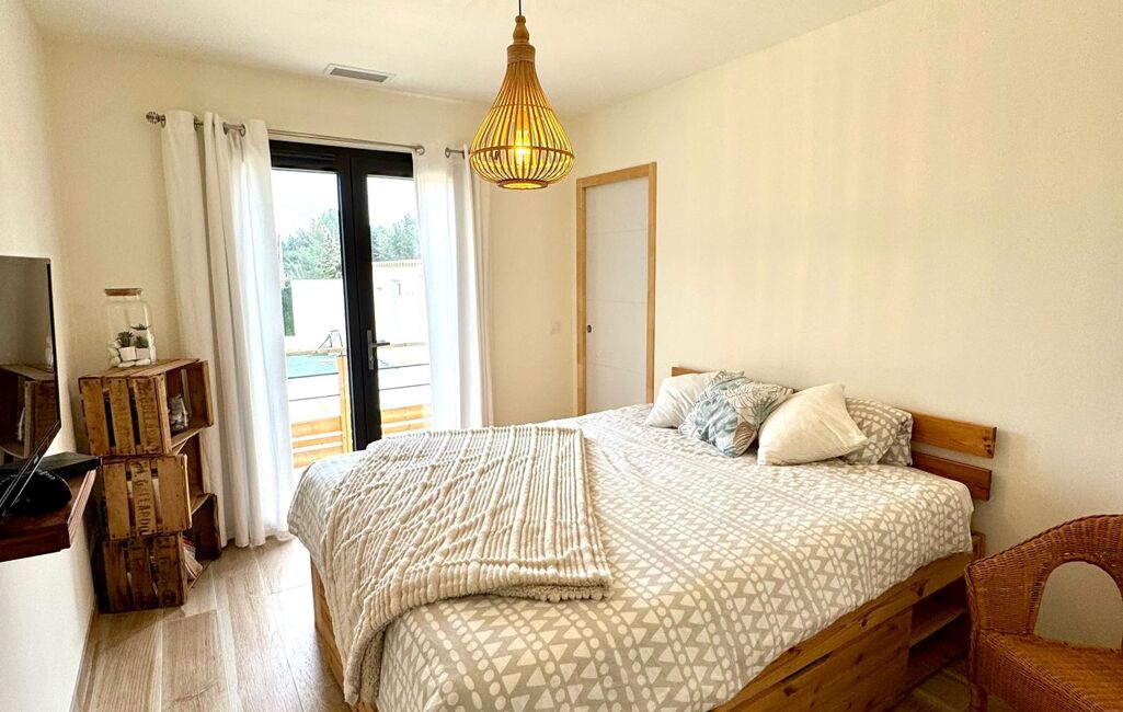 La maison se compose d’une grande pièce à vivre lumineuse, d’une cuisine moderne, de chambres toutes équipées de placards, d’une salle de bain, et bénéficie d’un confort optimal grâce à une climatisation gainable, un adoucisseur d’eau, un chauffe-eau thermodynamique et la fibre optique.