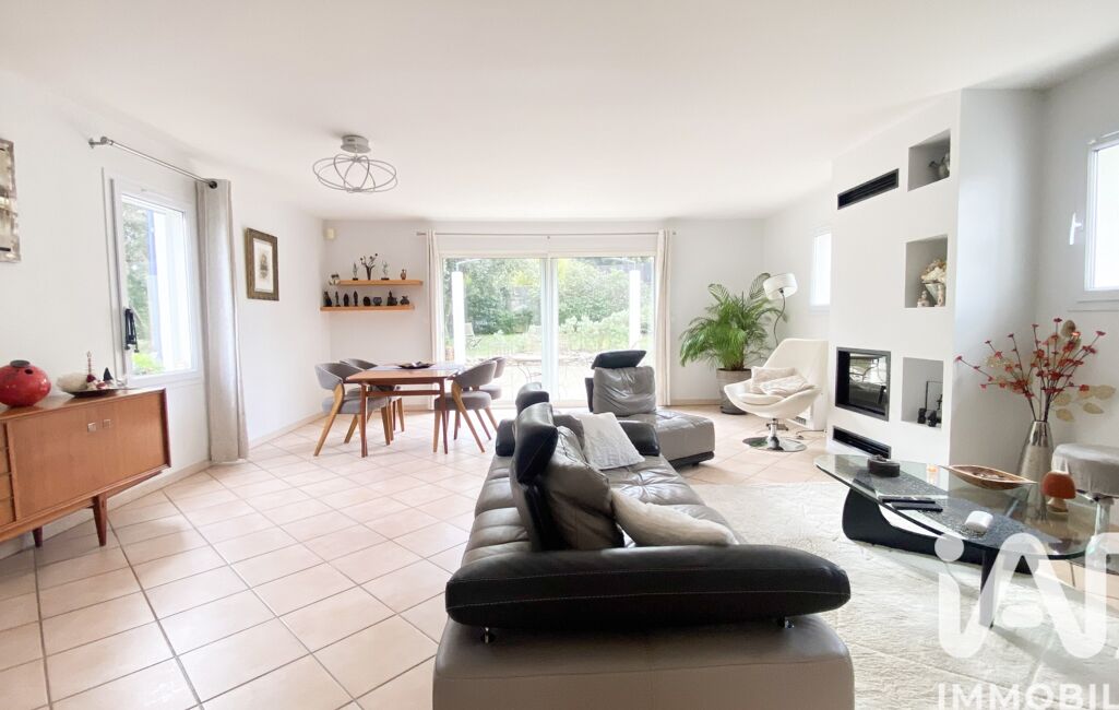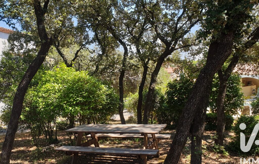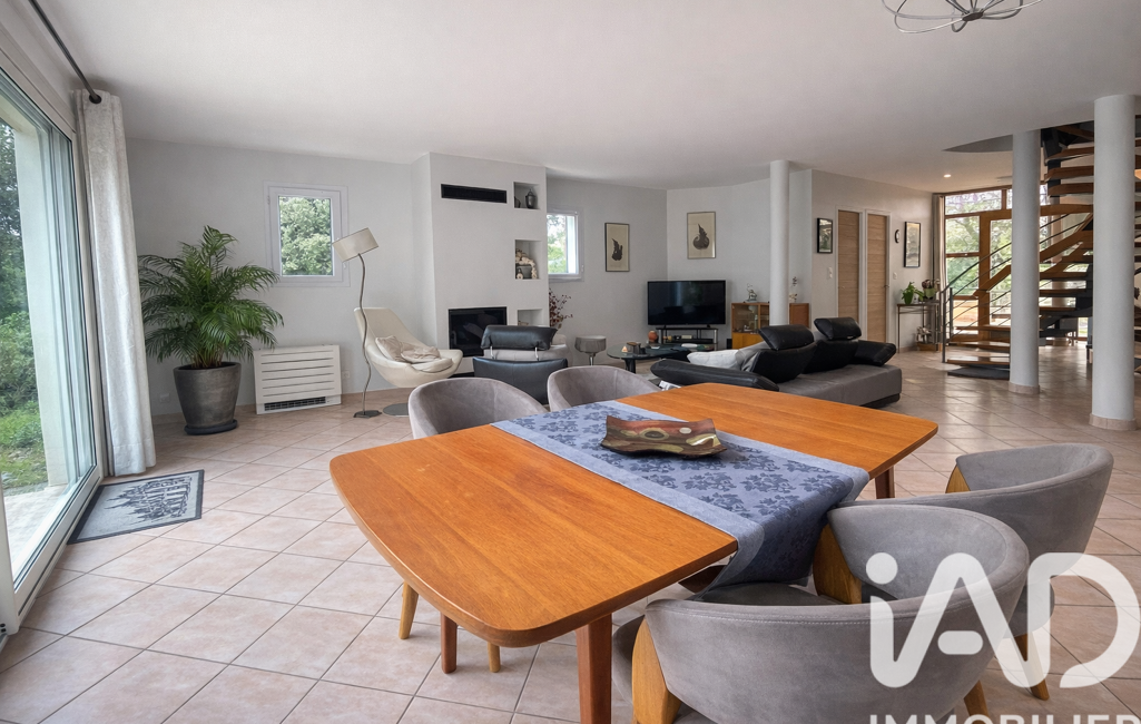 iad France - Corinne Baud vous propose: A POULX.. 10 min de Nîmes.. Implantée dans un environnement privilégié, cette superbe villa d’architecte s’élève sur un terrain exceptionnel de plus de 2 000 m² (DIVISIBLE), dont une belle partie est agrémentée d’une magnifique forêt de chênes. Un cadre rare, offrant vue dominante, calme absolu et absence de vis-à-vis. La maison séduit par sa conception originale et ses espaces généreux, avec quatre chambres, un espace bureau, une salle de bain et une salle d’eau, ainsi qu’une buanderie et un garage de 29 m² complétés par un atelier et une annexe.