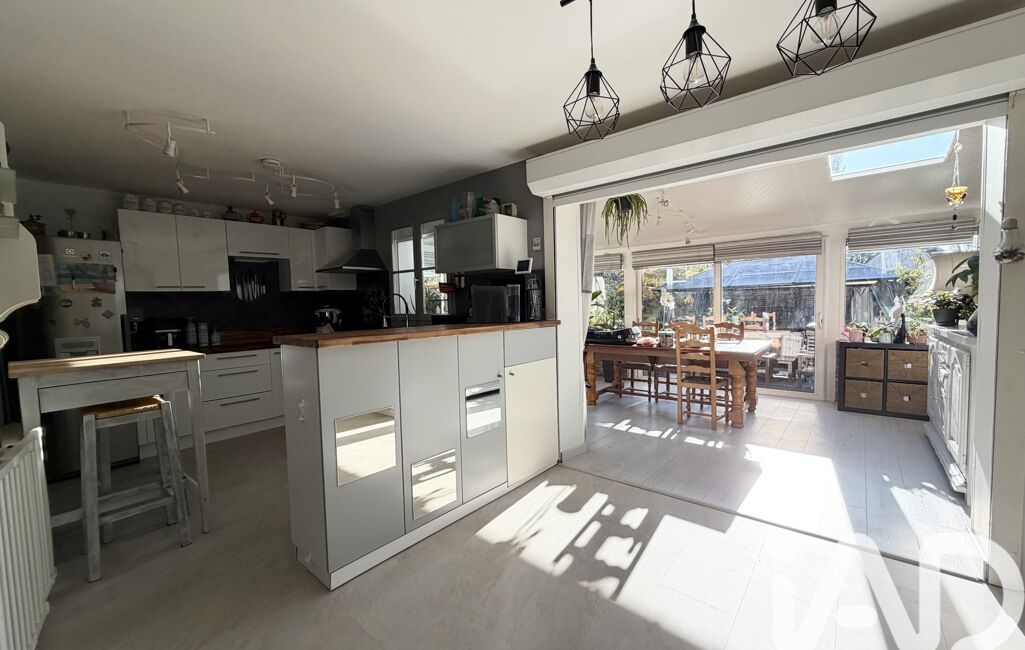 Dès l’entrée, vous découvrirez une agréable pièce de vie comprenant un salon chaleureux avec cheminée, ouvert sur une cuisine aménagée. L’ensemble donne accès à une belle véranda faisant office de salle à manger, offrant une belle luminosité et créant une continuité naturelle entre l'intérieur et le jardin.