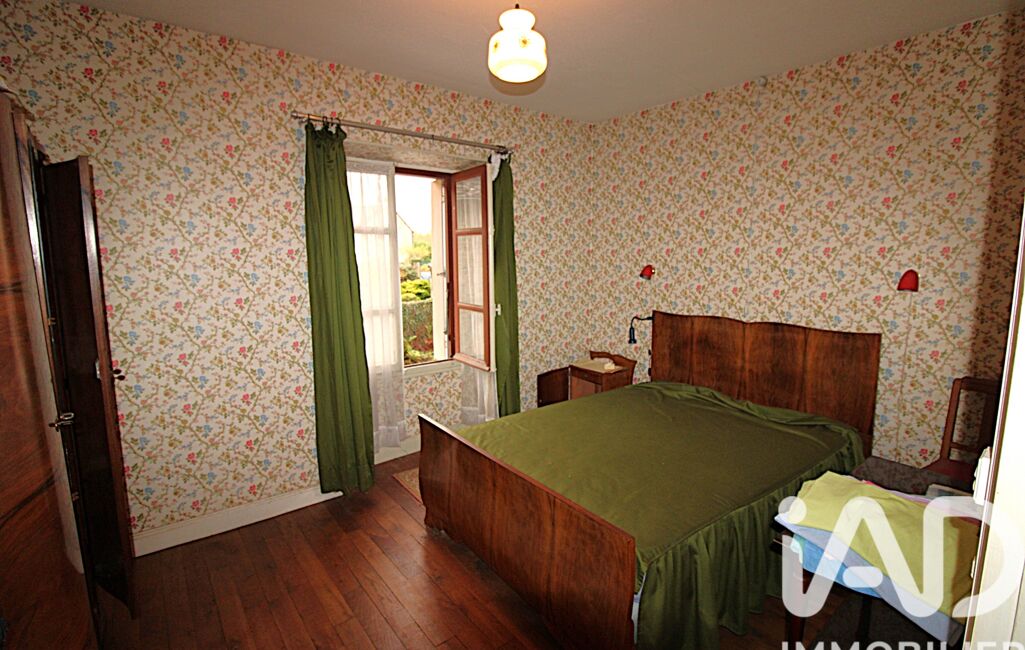 Maison familiale de bourg en pierres, bâtie au 17e siècle, d'une surface de 156 m² sur deux niveaux, avec grange en longère et dépendances à l’arrière.