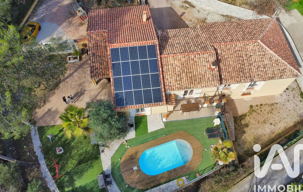 iad France - Christian Bergallo vous propose: Dans un cadre paisible et verdoyant découvrez cette magnifique bastide familiale composée de 5 chambres de plein pied , vastes espaces habitables associant à la fois confort contemporain et modernisme ,très peu énergivore grâce aux panneaux solaires , associés à la production d'eau chaude par un ballon thermodynamique , la construction entièrement traditionnelle de 2002 est d'environ 200 m² .La propriété entièrement close est implantée sur plus de 1700 m² de terrain plat Agrémenté d'une piscine prolongée d'une immense terrasse ombragée . Elle possède également de nombreuses surfaces annexes un agréable appartement T2 de 32 m² de plein pieds complétement indépendant , pouvant être agrandis ,mais aussi pour passionnés en tout genres son garage de plus de 160 m² ,ainsi une cave .