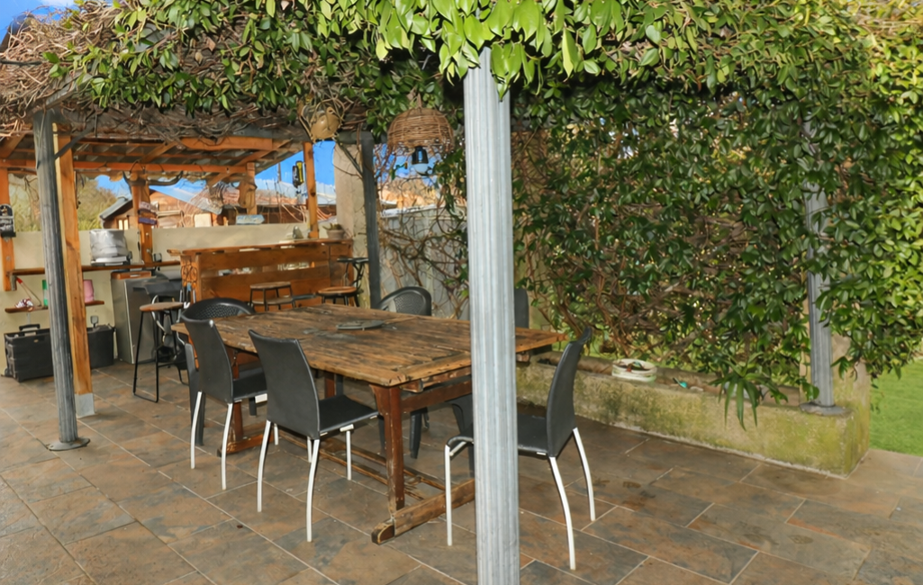 À l’extérieur, le jardin, entièrement aménagé et sans vis-à-vis, invite à la détente. On y trouve un portail motorisé, un espace permettant le stationnement de 3 à 4 véhicules, une agréable terrasse avec bar et tonnelle, parfaite pour les soirées d’été, ainsi qu’un abri de jardin, un potager et un espace dédié à l’étendage du linge.