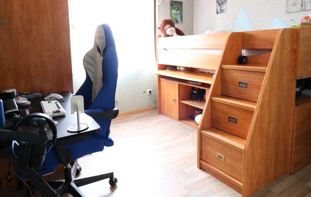 Côté nuit, l’appartement dispose de trois chambres parquetées, dont une avec dressing. Une salle de bains moderne avec placard et WC, ainsi qu’un cellier/buanderie, complètent l’intérieur de manière très fonctionnelle.