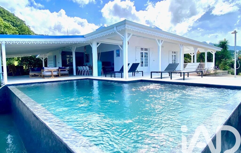 iad France - Hélène Moesta vous propose: Perchée sur les hauteurs les plus prisées de Bouillante, cette villa créole entièrement rénovée incarne le charme caribéen revisité dans un style contemporain raffiné. Depuis la terrasse, la vue est tout simplement spectaculaire : la baie mythique de Malendure, l’îlet Pigeon et la silhouette emblématique de la Réserve Cousteau, mondialement connue pour la plongée.