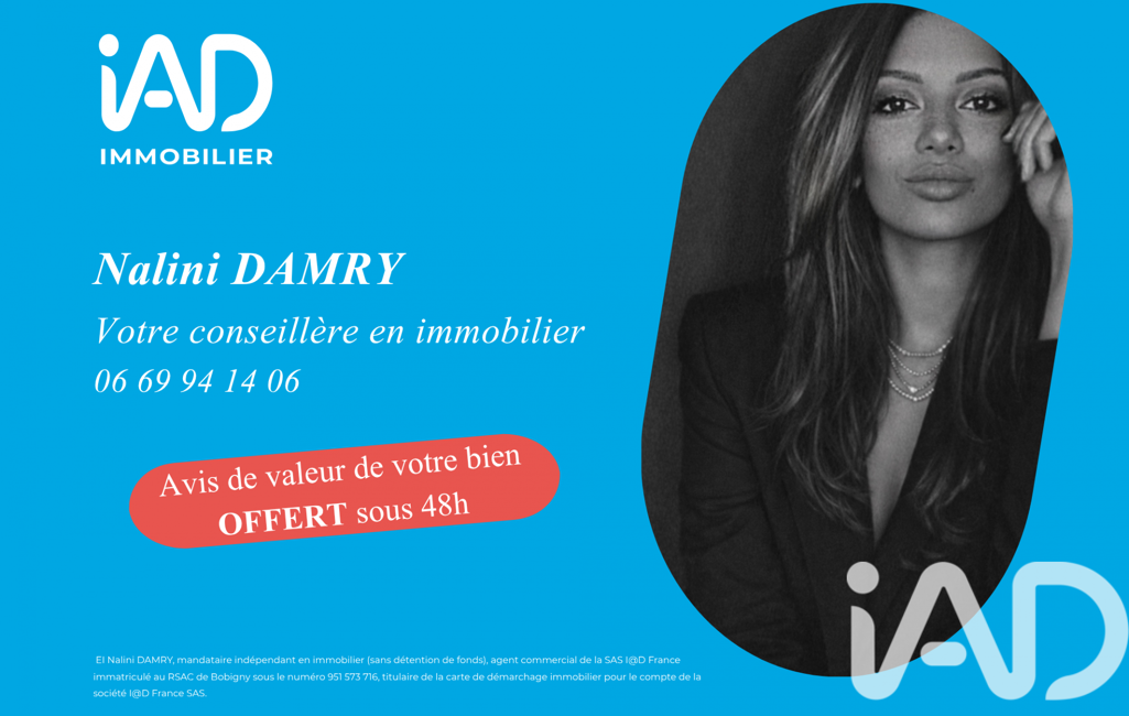 La présente annonce immobilière a été rédigée sous la responsabilité éditoriale de Mme Nalini Damry mandataire indépendant en immobilier (sans détention de fonds), agent commercial de la SAS I@D France immatriculé au RSAC de BOBIGNY sous le numéro 951573716, titulaire de la carte de démarchage immobilier pour le compte de la société I@D France SAS.