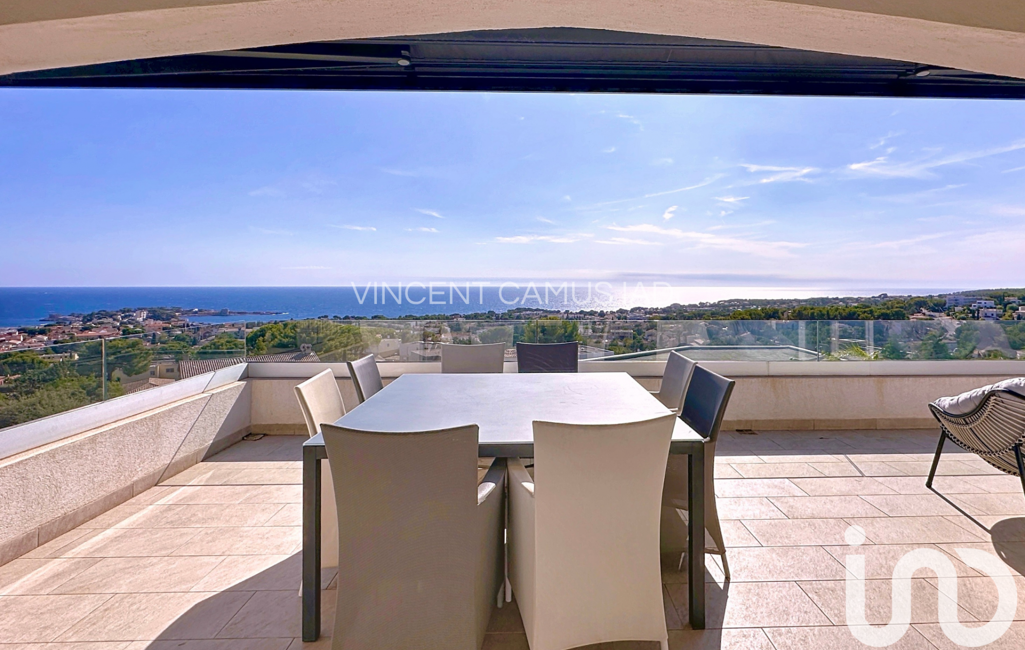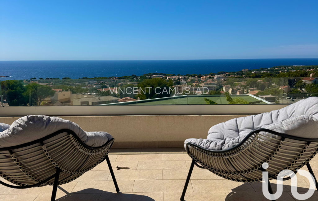 iad France - Vincent Camus vous propose: Nous vous proposons à la vente ce bien d’exception : villa sur le toit : située au dernier étage d’une copropriété intimiste de deux lots, offrant un cadre unique avec une vue imprenable sur la baie de Bandol, véritable tableau vivant à contempler chaque jour.