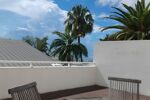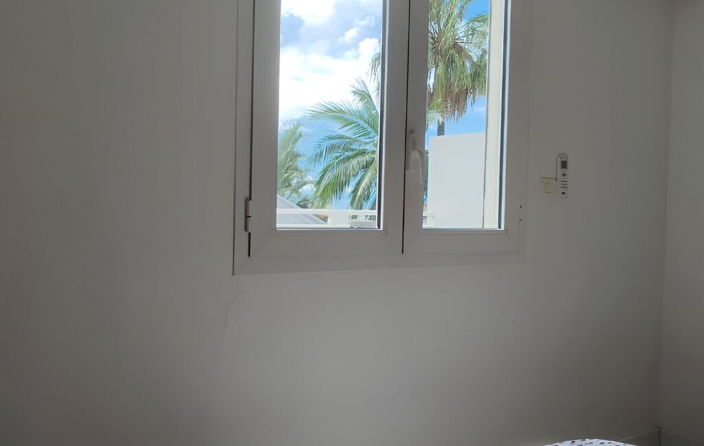 La chambre LUMINEUSE donne sur la terrasse, avec une vue sur des arbres exotiques, et dispose d’un grand placard intégré avec penderie.