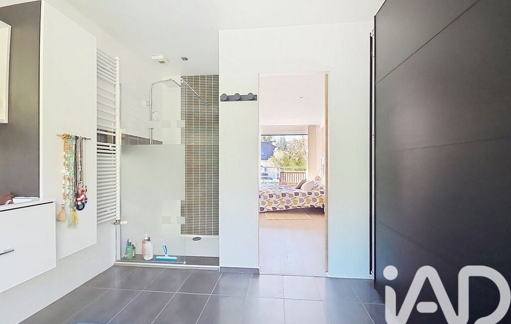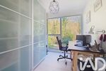 À l’étage, l’espace nuit se compose d’une suite parentale ouvrant sur un balcon, avec salle de douche et dressing, ainsi que de deux chambres, un bureau, une salle de bains et des toilettes séparées.