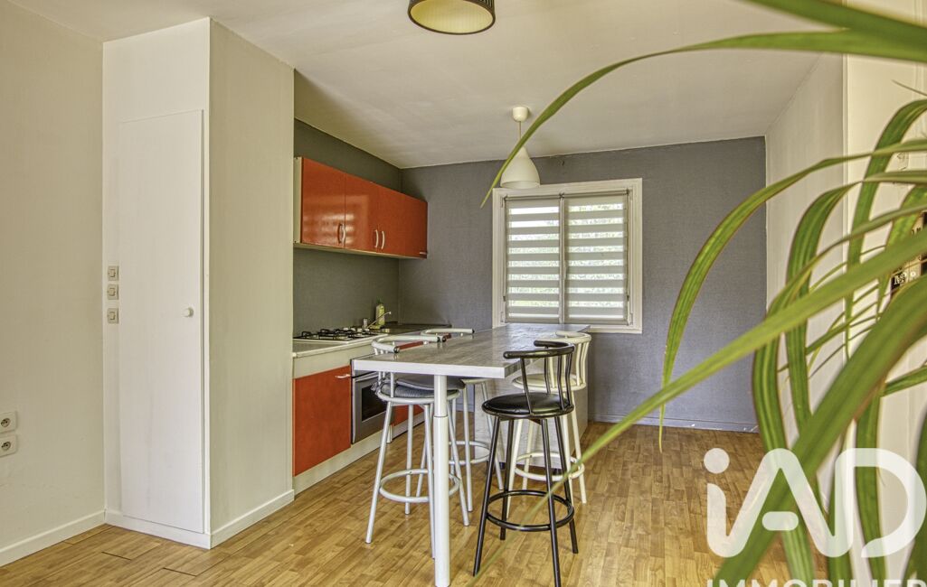 iad France - Laurence Ferreira vous propose: Maison Phénix évolutive de 1975, vivable de plain pied avec 2 chambres, une salle de bain, un WC indépendant et une cuisine aménagée, ouverte sur la pièce de vie avec une cheminée à insert.