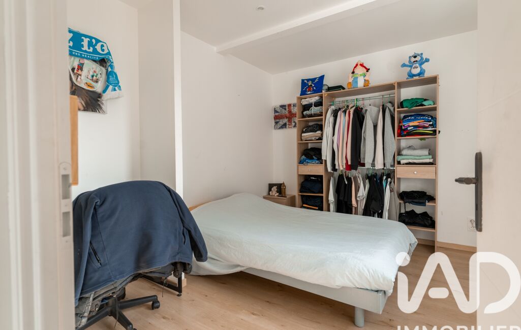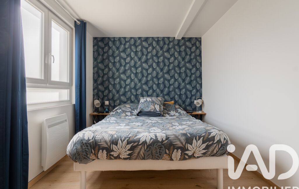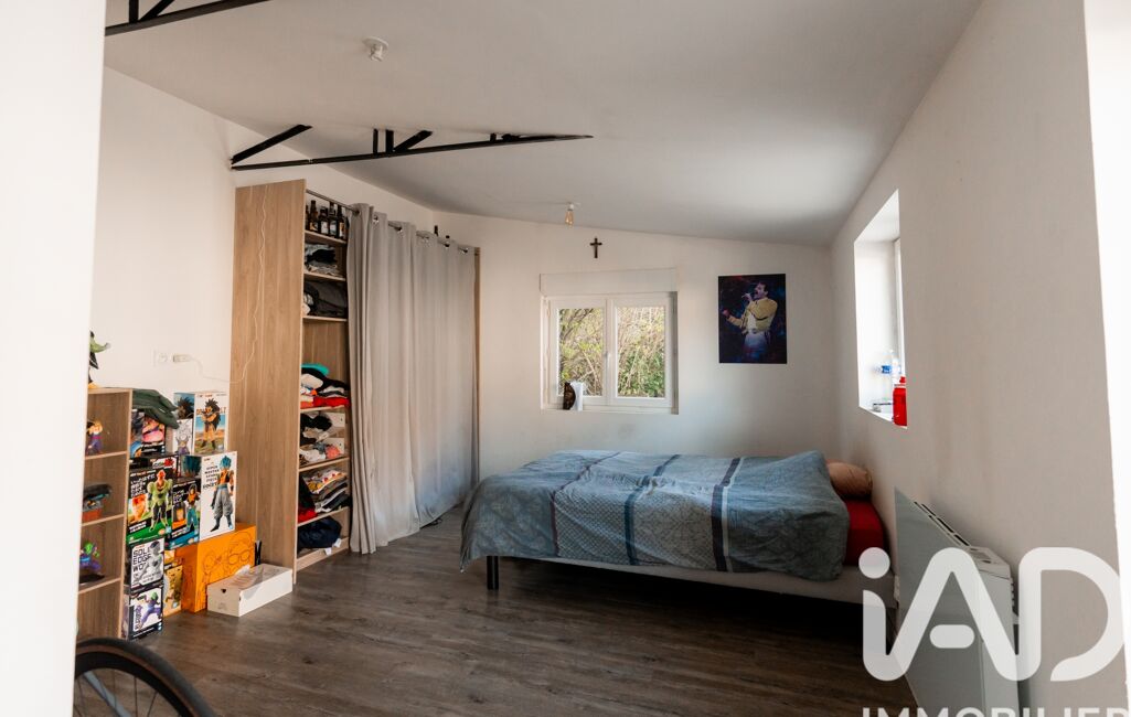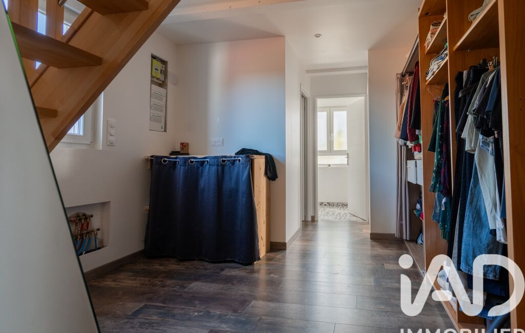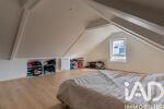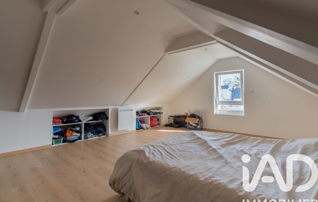 L’étage abrite une grande chambre mansardée. Cet espace isolé est idéal pour aménager un bureau de télétravail au calme ou une chambre supplémentaire.
