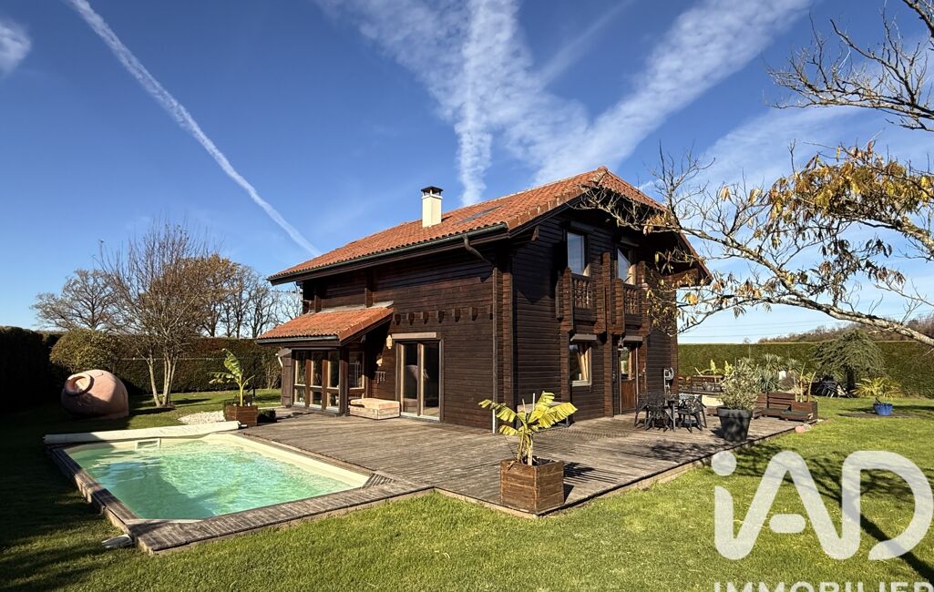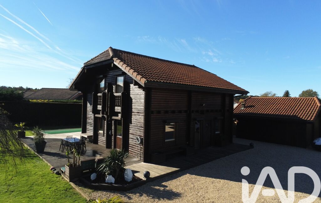 iad France - Nicolas Fresneau vous propose: EN EXCLUSIVITÉ à JASSERON, venez découvrir ce chalet construit en 2001, parfaitement entretenu, implanté sur un terrain clos et arboré de 1 536 m² avec piscine, étang et garage double.