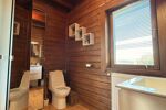 À l’étage, vous trouverez trois chambres, une salle de bains avec douche et baignoire ainsi qu’un second WC.