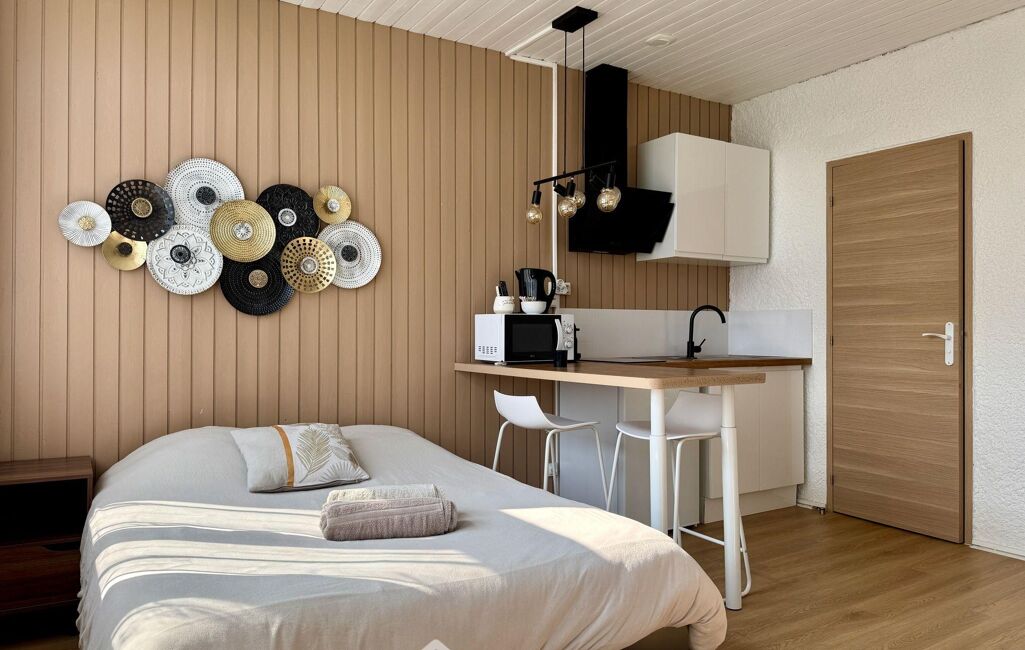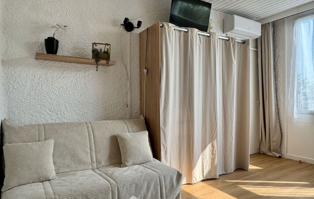 Découvrez ce studio rénové avec goût et vendu meublé. Le bien se compose d'une pièce de vie lumineuse avec espace séjour/nuit de 16 m2, une kitchenette aménagée et équipée, un canapé-lit ainsi que d'une salle d'eau moderne avec WC. Accessible de plain-pied, sa décoration actuelle vous séduira et l'agencement a été optimisé pour offrir un espace fonctionnel et agréable. Équipé d'un système de chauffage réversible par pompe à chaleur, garantissant confort en toute saison et maîtrise des consommations énergétiques.