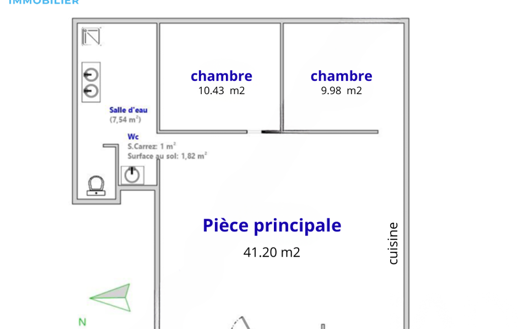 Ce bien se compose d’une GRANDE PIÈCE DE VIE LUMINEUSE de 45 m² avec CUISINE OUVERTE, de 2 CHAMBRES, et d’une SALLE D’EAU AVEC WC.