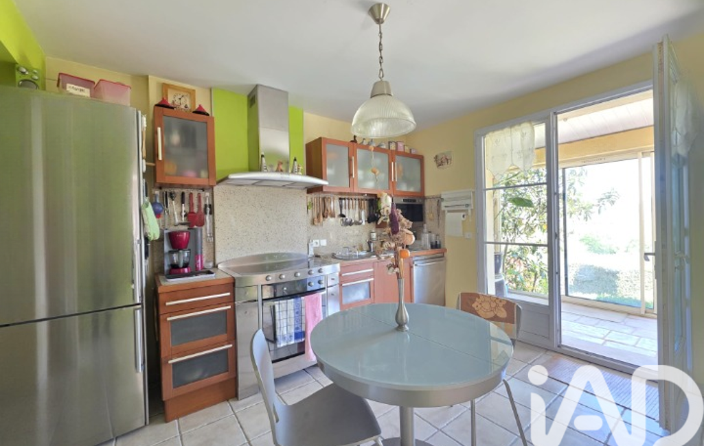 La cuisine entièrement équipée communique avec une grande véranda baignée de lumière, véritable jardin d'hiver donnant sur l'extérieur.