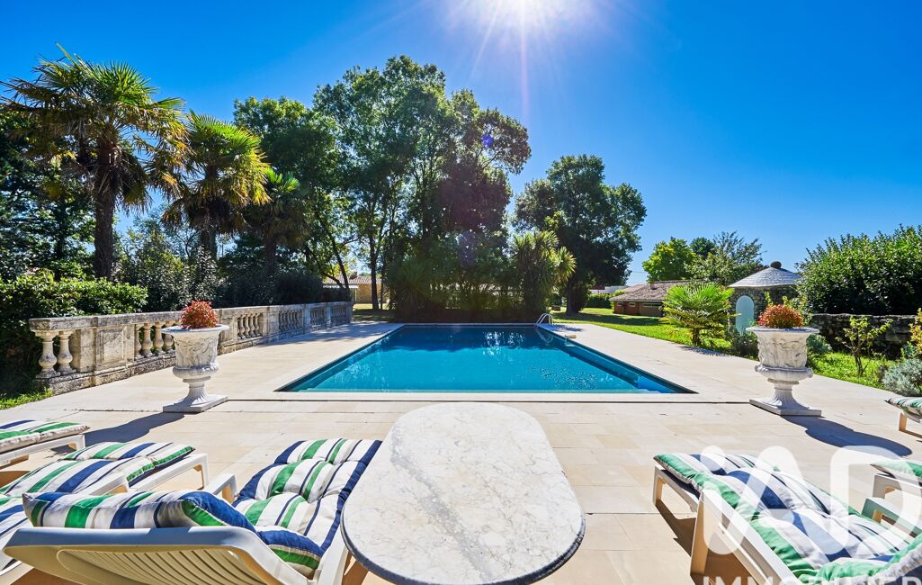 Le parc paysager accueille également piscine, garage et dépendances, dans une atmosphère calme et verdoyante.