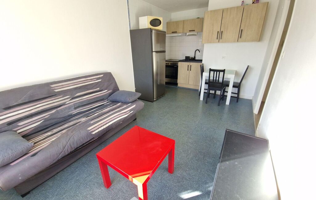 Situé au 1er étage de cette résidence avec ascenseur, cet appartement offre une entrée, une pièce principale avec cuisine partiellement aménagée et équipée (réfrigérateur, appareil de cuisson, hotte, micro-onde), une chambre et une salle de bain avec WC.
