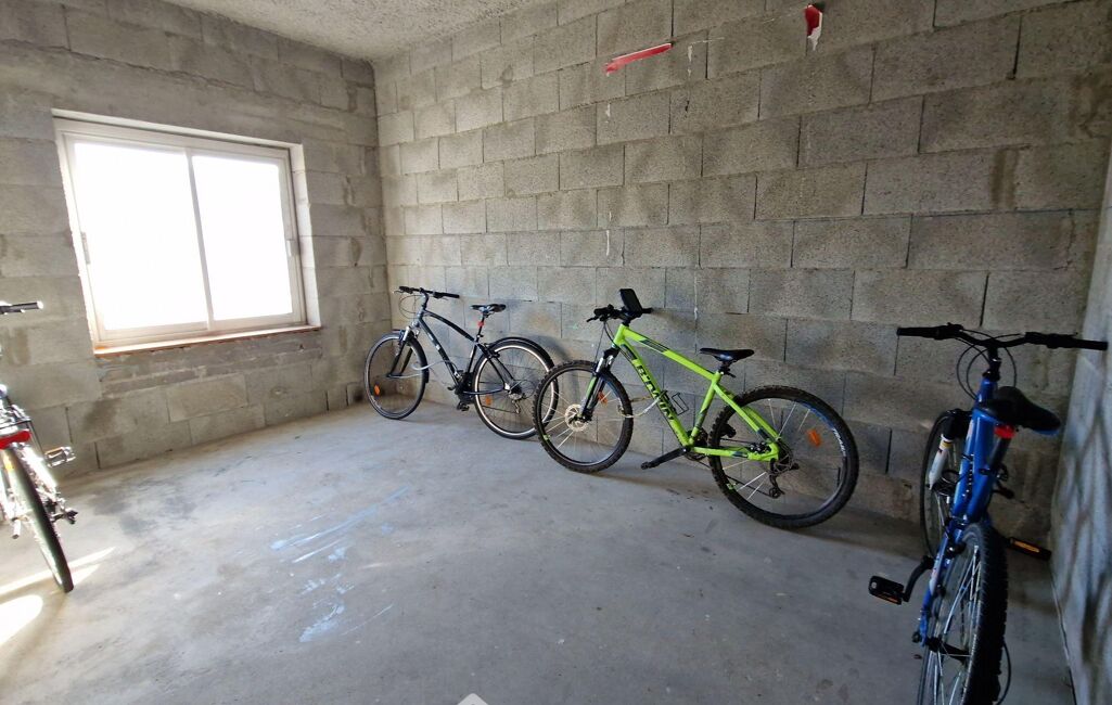 Cave bien pratique de 3,5 m² avec éclairage et prise électrique. Grand local vélos sécurisé.