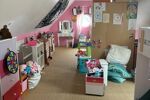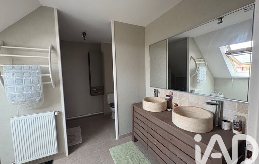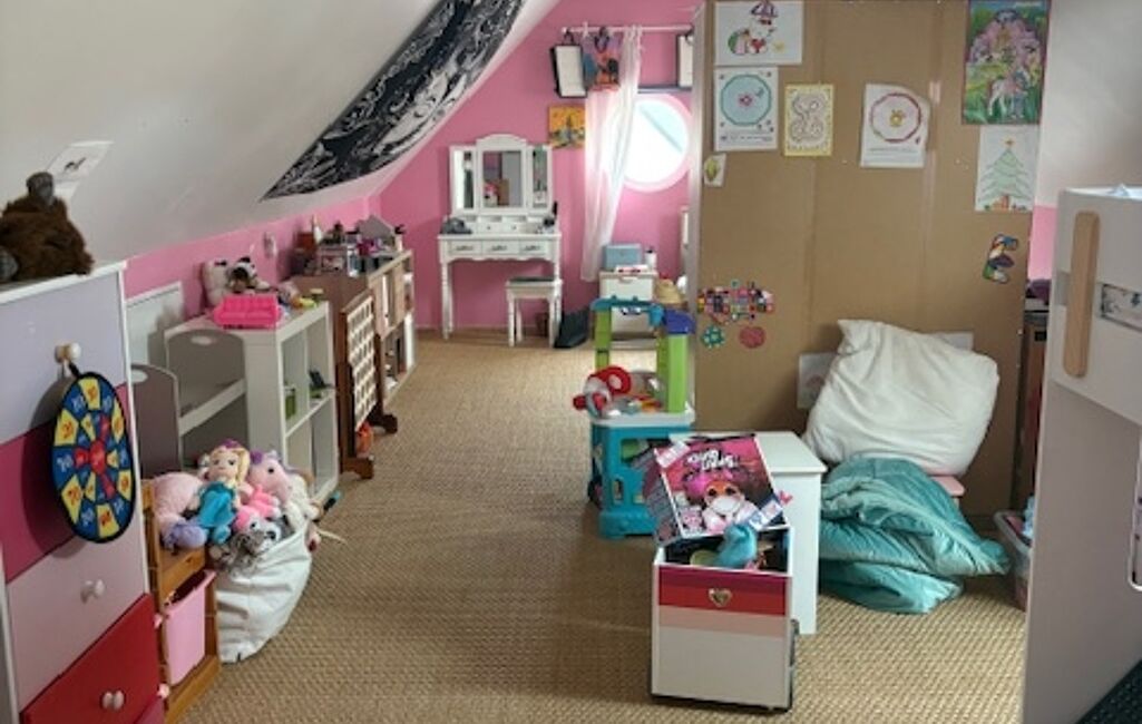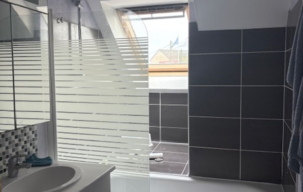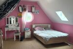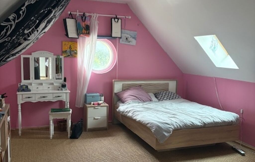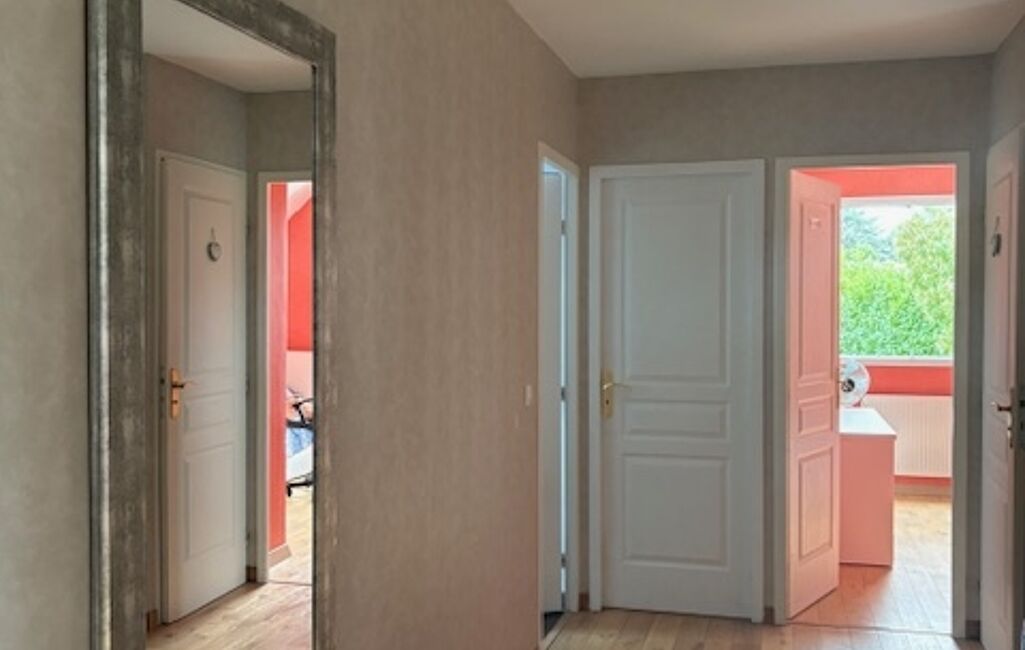 À l’étage, vous trouverez quatre chambres, dont une spacieuse de plus de 28 m², ainsi qu’une suite parentale avec salle de bain et dressing. Une seconde salle de bain est également à disposition pour les autres chambres. Palier, sols en carrelage et parquet, ensemble en parfait état.