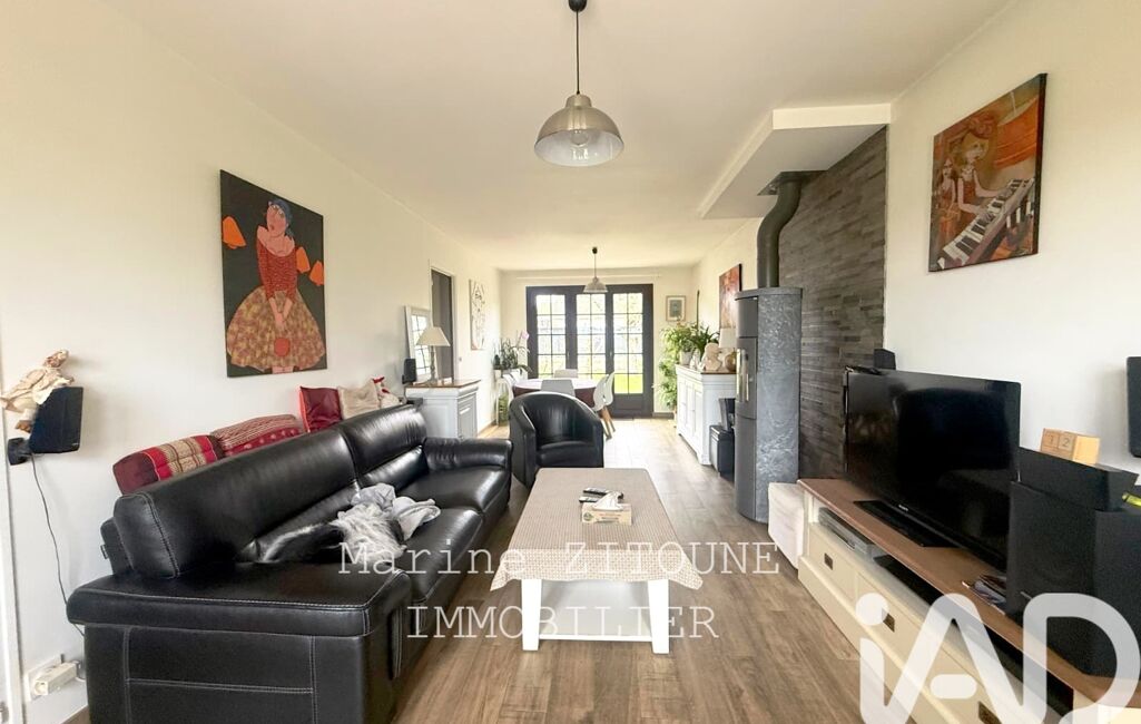 Au rez-de-chaussée, vous serez accueilli par une entrée desservant un double séjour traversant lumineux, agrémenté d’un poêle à bois, ainsi qu’une cuisine séparée aménagée et équipée.