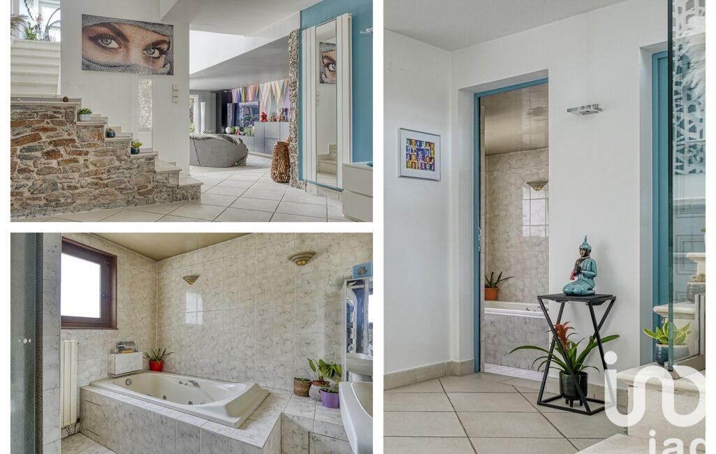 Au rez-de-chaussée : Un hall d’entrée avec rangements dessert une chambre, une salle de bains et un WC indépendant. La cuisine ouverte, aménagée et équipée, donne sur une arrière-cuisine avec buanderie, avant de s'ouvrir sur une grande pièce de vie d’environ 92m², baignée de lumière grâce à une superbe véranda, tandis que la hauteur sous plafond de la pièce atteint 8,40m. L'espace de vie s'ouvre directement sur la terrasse et le jardin paysagé, avec jacuzzi californien, bassin et cabanon de jardin. Vous aurez également la possibilité de construire une piscine sur la partie restante du terrain.