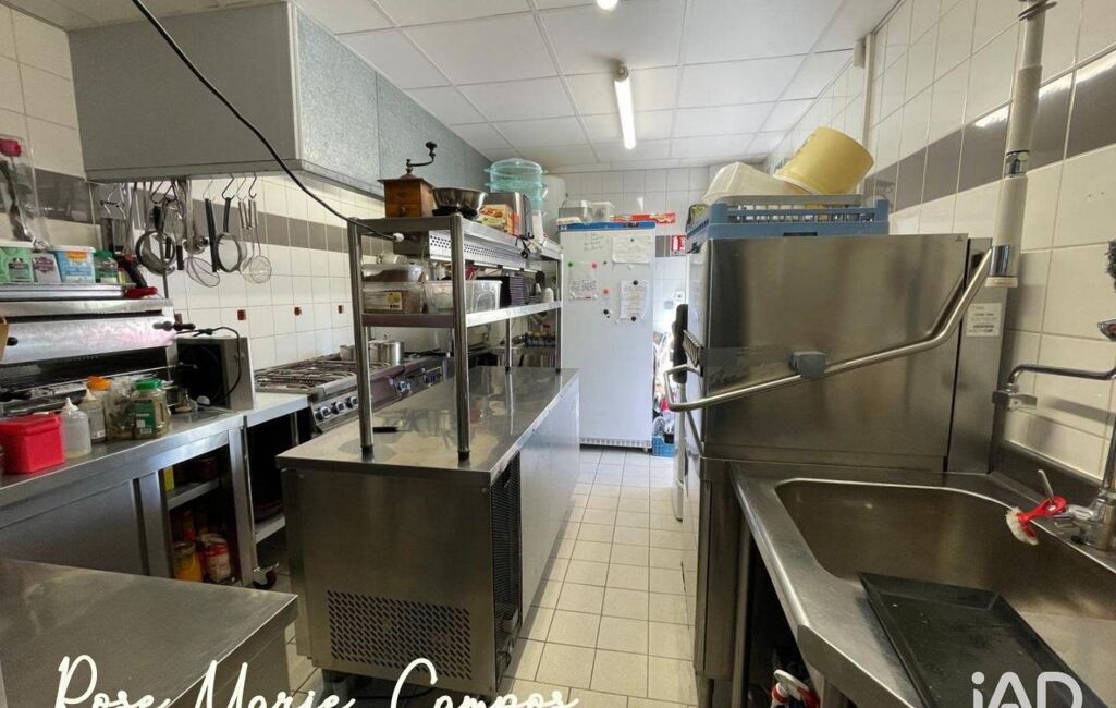 Cuisine avec matériel professionnel complet (hotte, piano de cuisson, four, frigos, plonge, lave-vaisselle à capot).