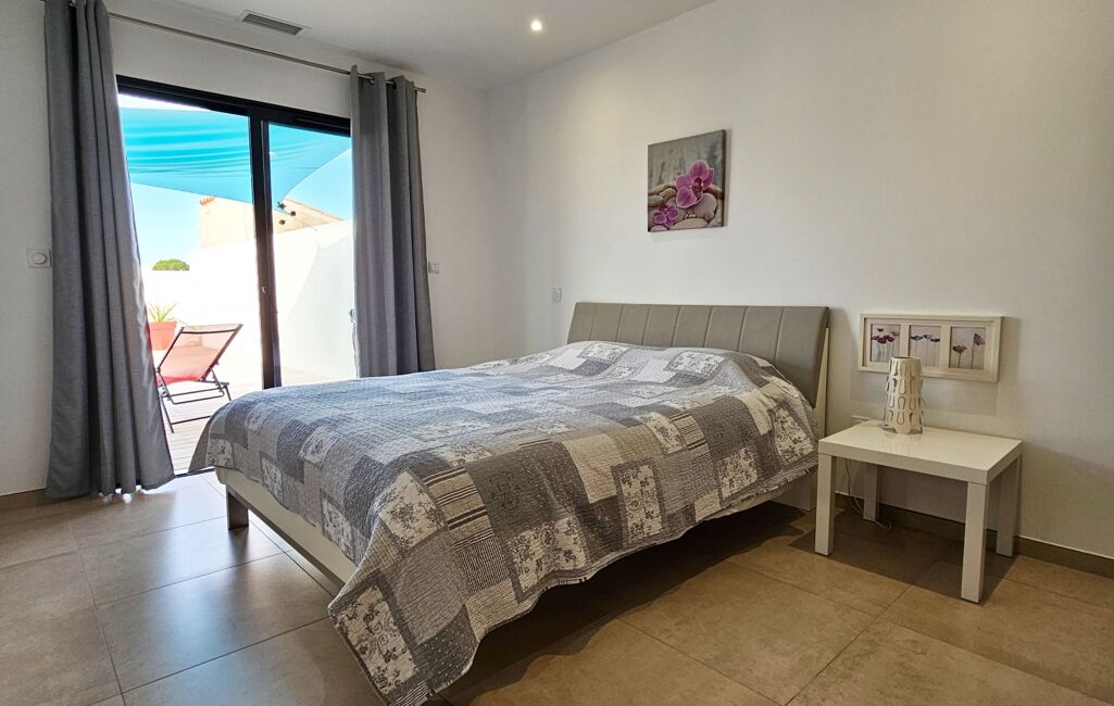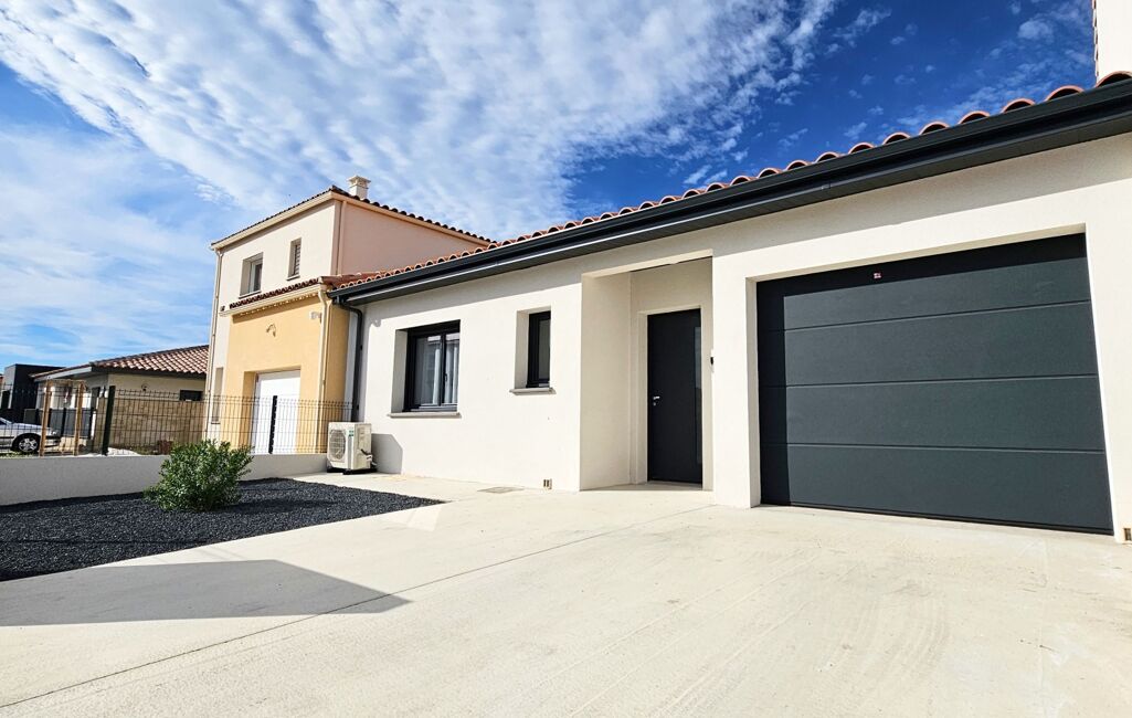 Magnifique Villa belle prestations de 2021 plain pied de 91m2 habitable T3 sur une parcelle de 233m2 en 2 faces avec garage de 12,50m2, avec piscine en béton, impasse calme climatisation gainable réversible, plein ouest sans vis à vis.